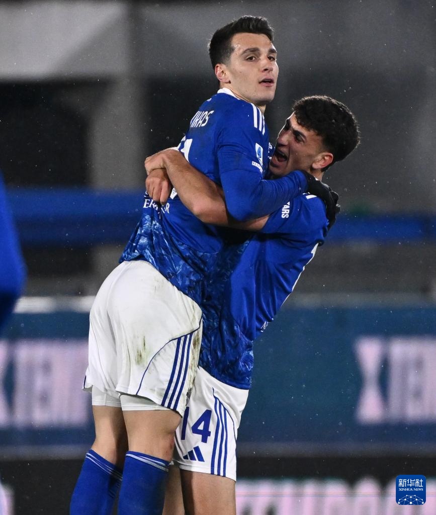 3月15日,科莫队球员迭戈·卡洛斯(右)与队友迪奥庆祝进球。