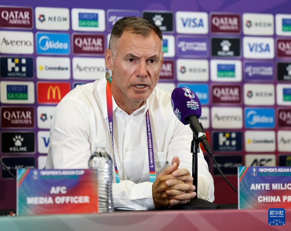 3月16日,中国女足主教练安特·米利西奇在新闻发布会上发言。