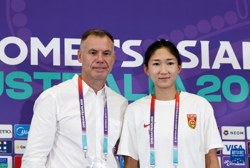 3月16日,中国女足主教练安特·米利西奇(左)和球员王妍雯在新闻发布会上合影。