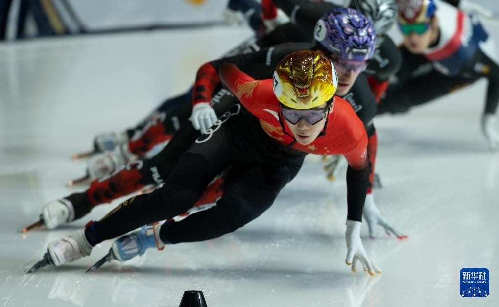 3月15日,中国选手王欣然(左上)在女子500米四分之一决赛中。最终,她未能晋级半决赛。