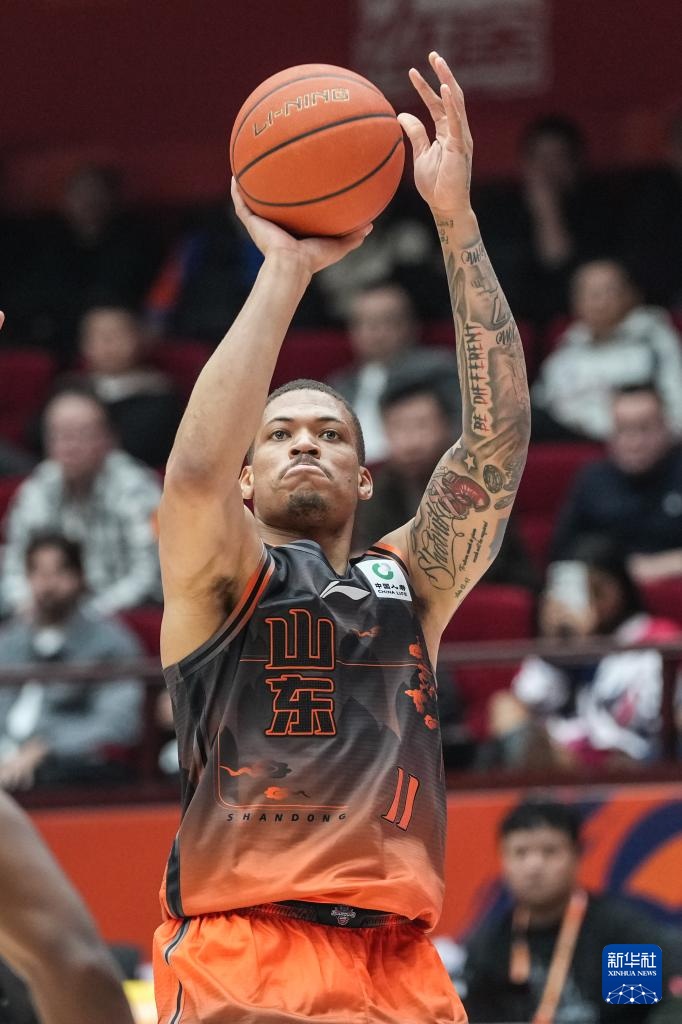 3月16日,山东高速队球员约翰逊在比赛中投篮。