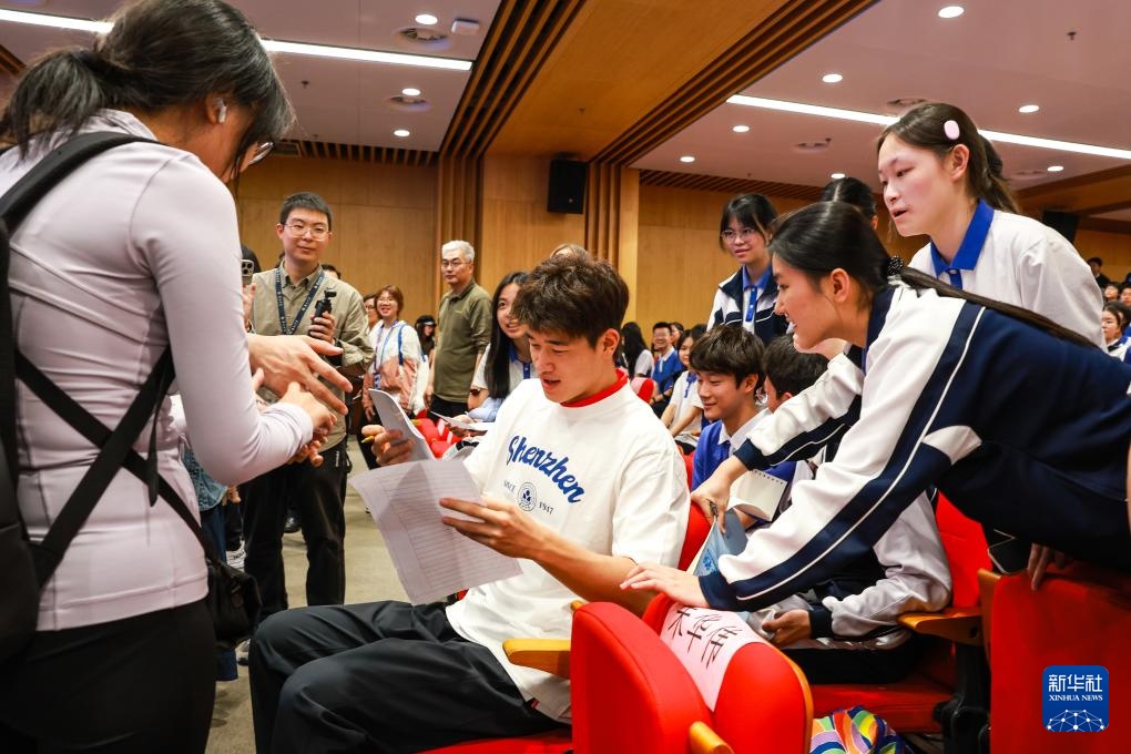 3月18日,2026年中国游泳公开赛“冠军进校园”公益活动在深圳中学举行。