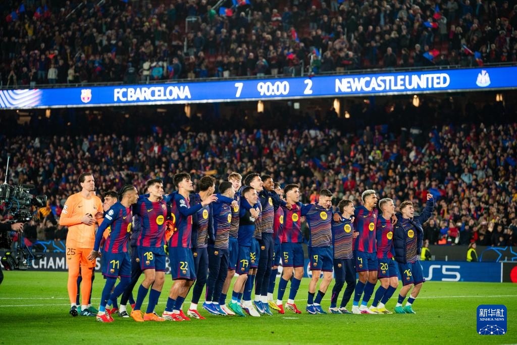 当地时间3月18日,在西班牙巴塞罗那进行的2025/2026赛季欧洲足球冠军联赛八分之一决赛第二回合比赛中,西甲巴塞罗那队主场7比2战胜英超纽卡斯尔联队,总比分8比3晋级八强。