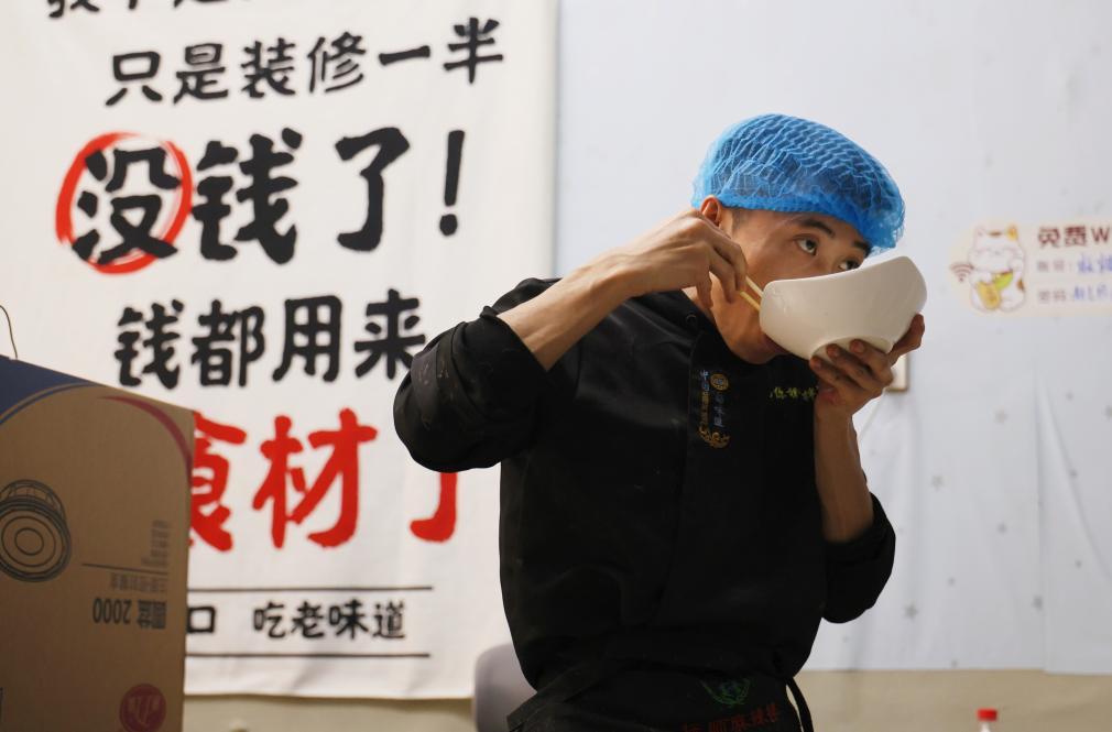 赵磊在店铺后厨忙碌(3月3日摄)。新华社记者 赵子硕 摄
