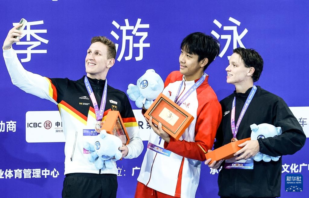 当日,在广东深圳举行的2026年中国游泳公开赛男子200米自由泳比赛中,张展硕夺得冠军。