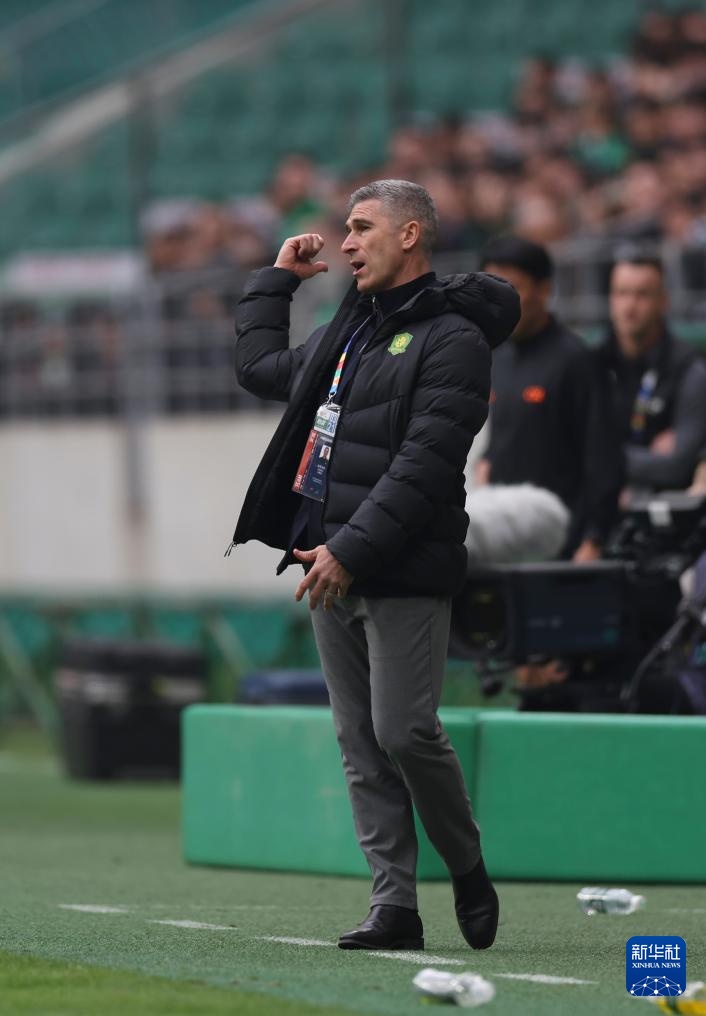 3月21日,北京国安队主教练蒙哥马利在场边指挥。