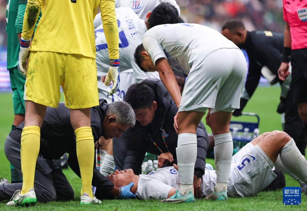 3月21日,上海申花队球员绍洛·米内罗在比赛中受伤后倒地。