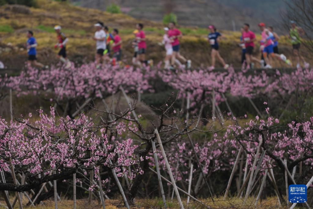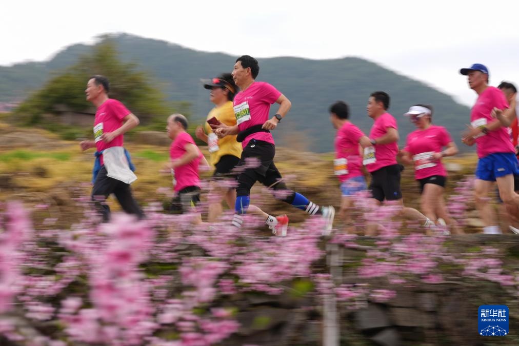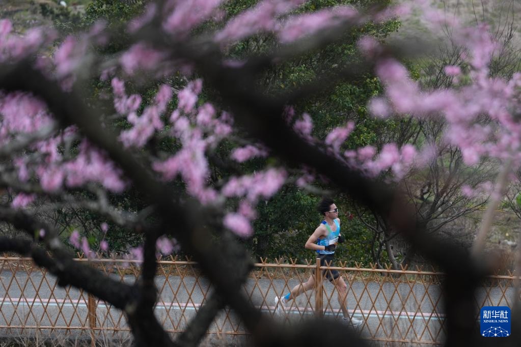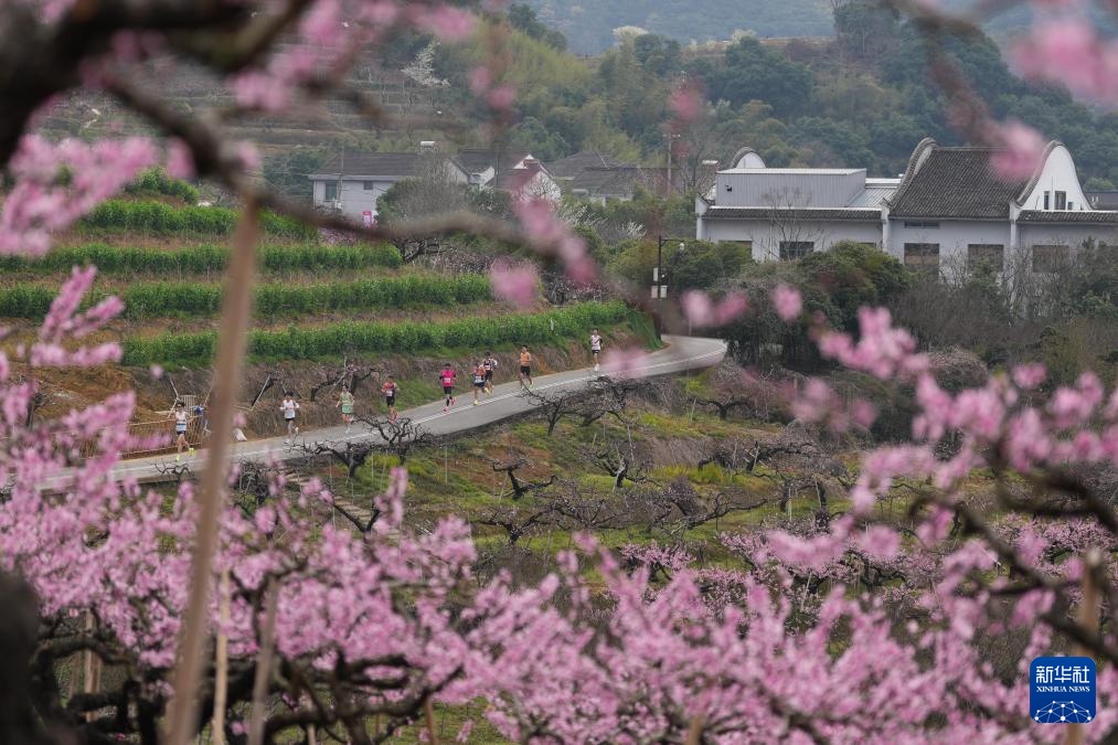 3月22日,参赛选手经过宁波市奉化区萧王庙街道林家村的一片桃园。