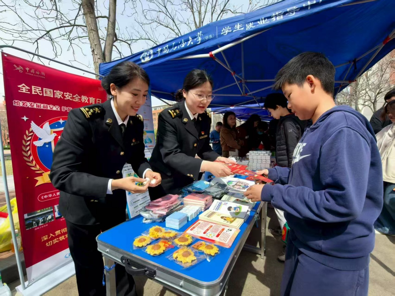 央视网消息 4月11日,中华人民共和国黄岛海关联合青岛海关卫生检疫处及西海岸新区疾控中心,走进中国石油大学(华东)开展全民国家安全教育日宣传活动。