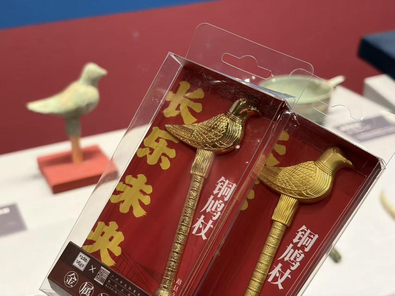 围绕本次汉代珠饰展,公园推出文创“铜鸠杖金属冰箱贴”,原型出自本次展览展出的“铜鸠杖首”,原为汉代尊老赐杖之物,鸠鸟寓意食之不噎、福寿安康,杖身象征地位与尊严。