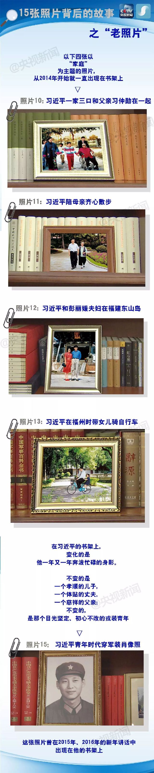 2017年1月,习近平在春节团拜会上讲了这样一番话:“不能忘了人间真情,不要在遥远的距离中隔断了真情,不要在日常的忙碌中遗忘了真情,不要在日夜的拼搏中忽略了真情”。以下4幅照片,从2014年开始,就一直出现在习主席的书架上,也是他的真情流露——