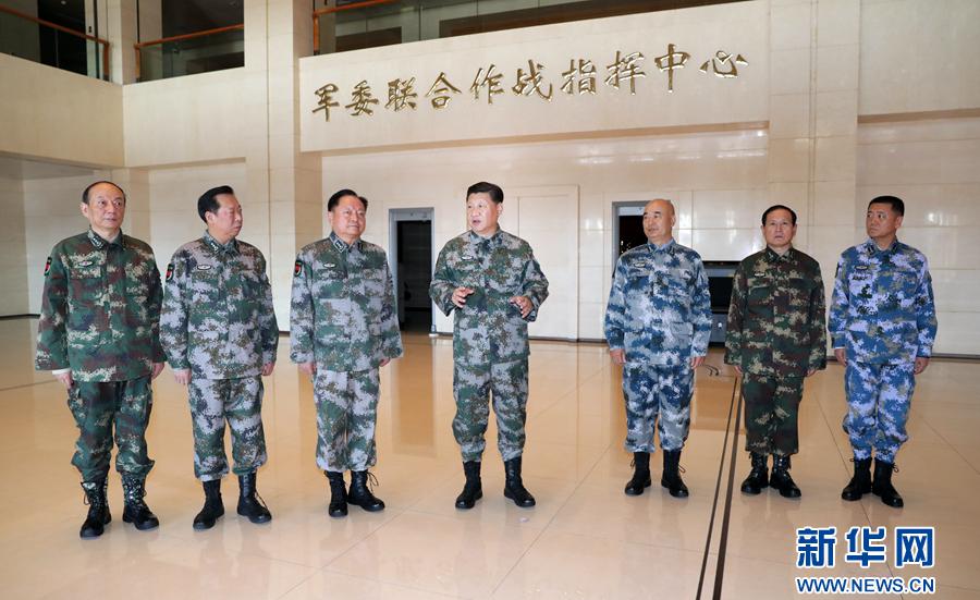 2017年11月3日,中共中央总书记、国家主席、中央军委主席、军委联指总指挥习近平视察军委联合作战指挥中心,表明新一届军委贯彻落实党的十九大精神、推动全军各项工作向能打仗、打胜仗聚焦的鲜明态度。图片来自:新华网