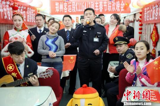 热热闹闹的“列车春晚”吸引很多旅客参与。 张强 摄