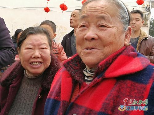 村民除夕大团圆现场,80岁的老太太脸上充满幸福感。