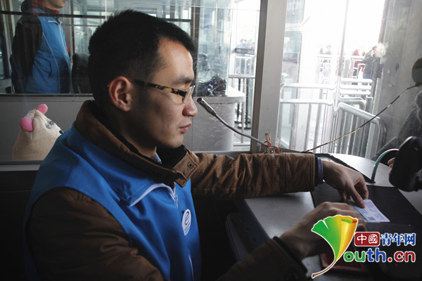 国家铁路局“服务群众 服务基层”活动志愿者张振军。中国青年网记者 刘芊芊 摄