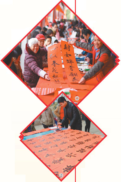 图④:贵州省黔东南苗族侗族自治州剑河县观么镇的老百姓收到当地文联赠送的春联。杨文斌摄