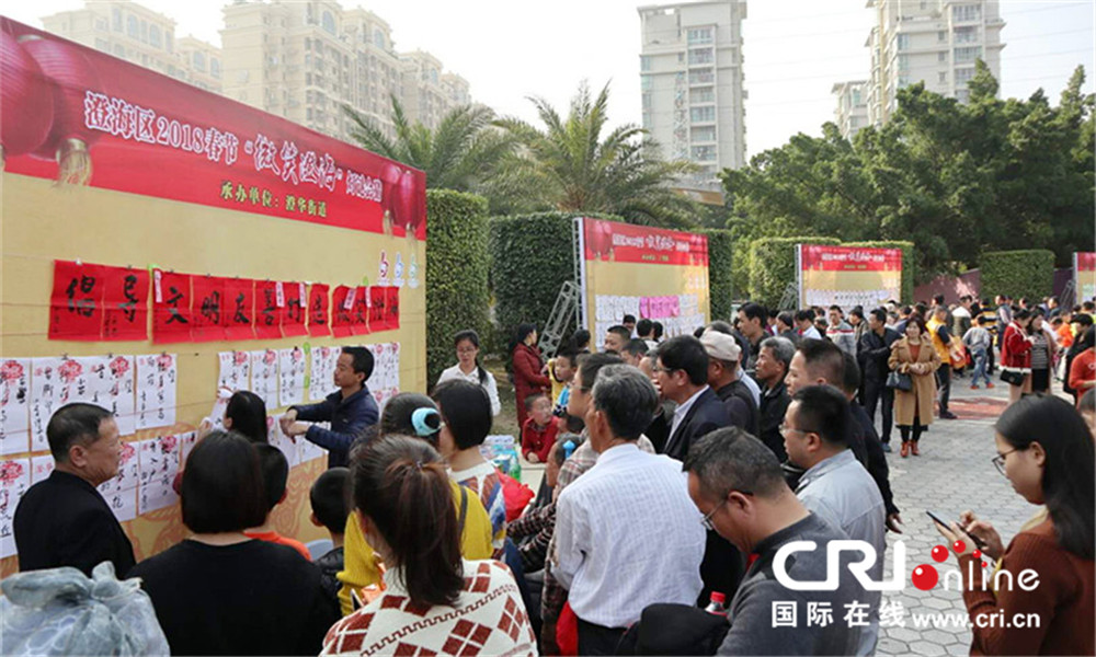 国际在线消息(记者 金玉、特约通讯员王文锦):广东澄海,府前广场,鼓声阵阵,人头攒动。13个灯谜台环广场圆坛排开,近8000条谜笺悬于谜台上,供灯谜爱好者猜射。这是2018“微笑澄海”春节大众文化广场系列活动之一,由澄海文化馆、谜协、各镇(街道)联合举办的广场灯谜会猜。