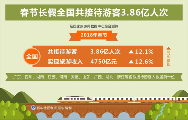 图表:春节长假全国共接待游客3.86亿人次 新华社记者 曲振东编制