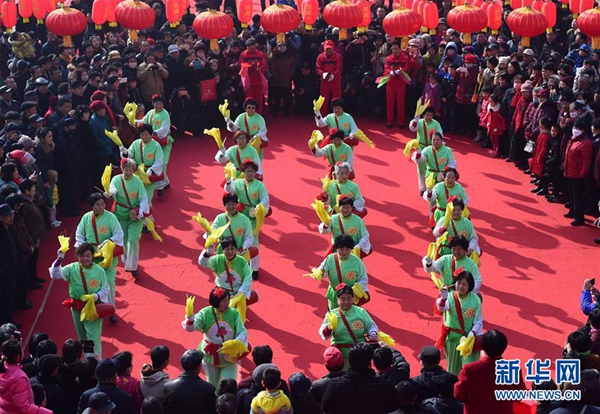 2月22日,在河北省沧州市新华区举行的“民俗展演闹新春”活动上,腰鼓爱好者在表演腰鼓。当日是正月初七,各地举行丰富多彩的民俗文化展演活动,热热闹闹欢庆新春。新华社发(傅新春 摄)