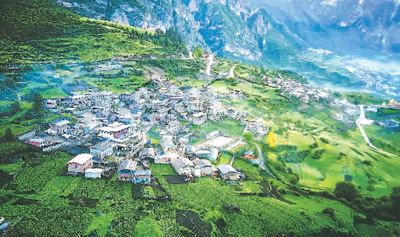 图为雨后清晨的扎尕那美丽景色。扎尕那位于甘肃省甘南藏族自治州迭部县西北30余公里处的益哇乡,藏语意为“石匣子”。