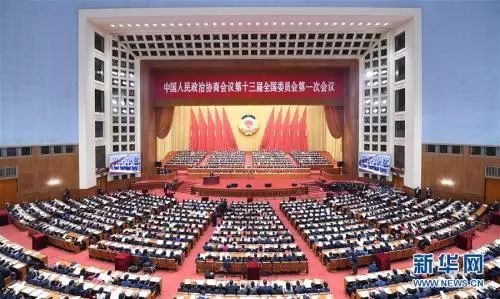 全国政协十三届一次会议开幕会3日15时在人民大会堂举行,习近平等党和国家领导人出席大会。大会应出席委员2158人,实到2149人,符合规定人数。俞正声代表政协第十二届全国委员会常务委员会作工作报告。