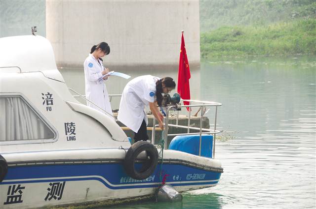 涪陵区生态环境监测站工作人员在乌江上开展水环境监测
