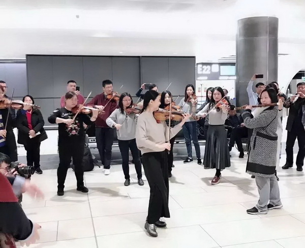 在上海的地铁和商场,上海城市交响乐团也做过快闪,然而机场快闪还是第一次。