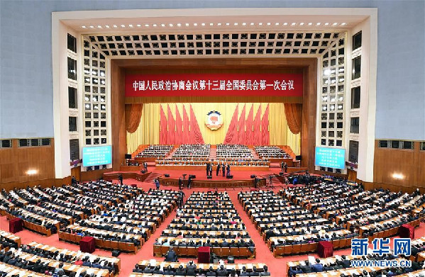 央视网消息(新闻联播):中国人民政治协商会议第十三届全国委员会第一次会议在圆满完成各项议程后,15日上午在人民大会堂闭幕。会议号召,人民政协各级组织、各参加单位和广大政协委员,更加紧密地团结在以习近平同志为核心的中共中央周围,以习近平新时代中国特色社会主义思想为指导,同心同德、扎实工作,为决胜全面建成小康社会、夺取新时代中国特色社会主义伟大胜利、实现中华民族伟大复兴的中国梦而努力奋斗。
