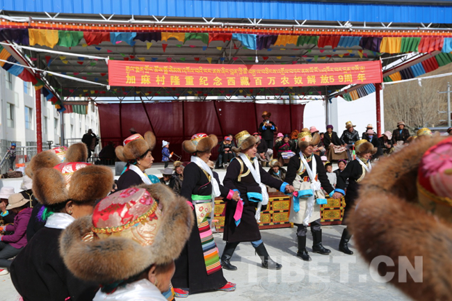 图为加麻村村民参加庆祝西藏百万农奴解放59周年文艺演出