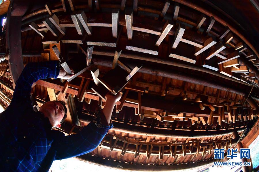 他家有一百多个小板凳。国家扶贫开发工作重点县——广西融水苗族自治县地处大苗山腹地,交通不便,长期以来经济发展缓慢。近年来,随着国家脱贫攻坚政策的深入推进,大苗山群众的生存环境不断改善,生活条件也越来越好。日子好了,房子宽敞了,喜事多了,客人来了,热情好客的苗家人添置了很多小板凳用来待客。记者在杆洞乡部分苗寨采访了解到,很多只有几口人的苗家,家里的小板凳却有数十个,最多的甚至有两百多个。苗家的小板凳,摆在家里成为一道墙,墙内是老少乡亲的欢声笑语,挂在屋檐下成为一道梁,梁下是苗山深处的幸福生活。新华社记者黄孝邦摄