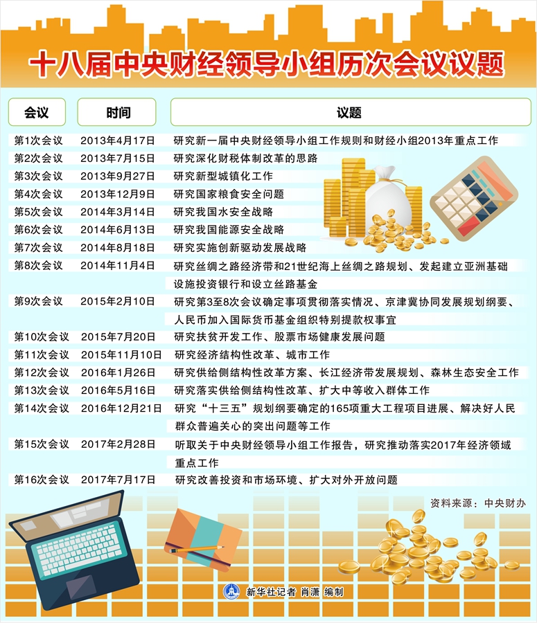 图表:十八届中央财经领导小组历次会议议题 新华社记者 肖潇编制