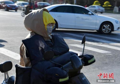 4月6日,石家庄市民穿上厚厚的冬衣出行。 中新社记者 翟羽佳 摄