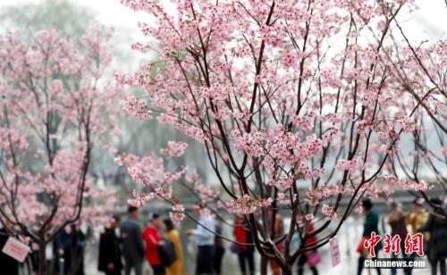 3月27日,游客在北京玉渊潭公园赏樱花。中新社记者 杜洋 摄