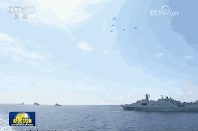 △ 2018年4月12日,中央军委在南海海域举行海上阅兵,图为受阅战机