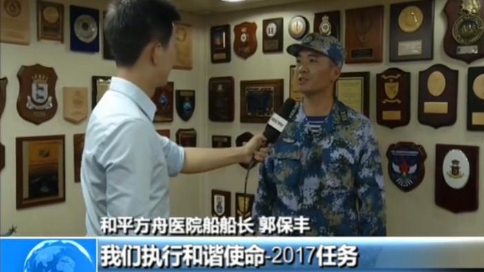 和平方舟医院船船长郭保丰:令我印象比较深刻的是去年我们执行和谐使命-2017任务,我们首次访问塞拉利昂。当时埃博拉疫情刚刚结束,我们的医疗人员冒着风险,克服重重困难,深入灾区,为当地民众提供医疗服务。后来当地民众见到我们纷纷竖起大拇指,中国,中国。塞拉利昂总统还亲自登船表示感谢,我们还接受了塞方赠送的纪念徽章。