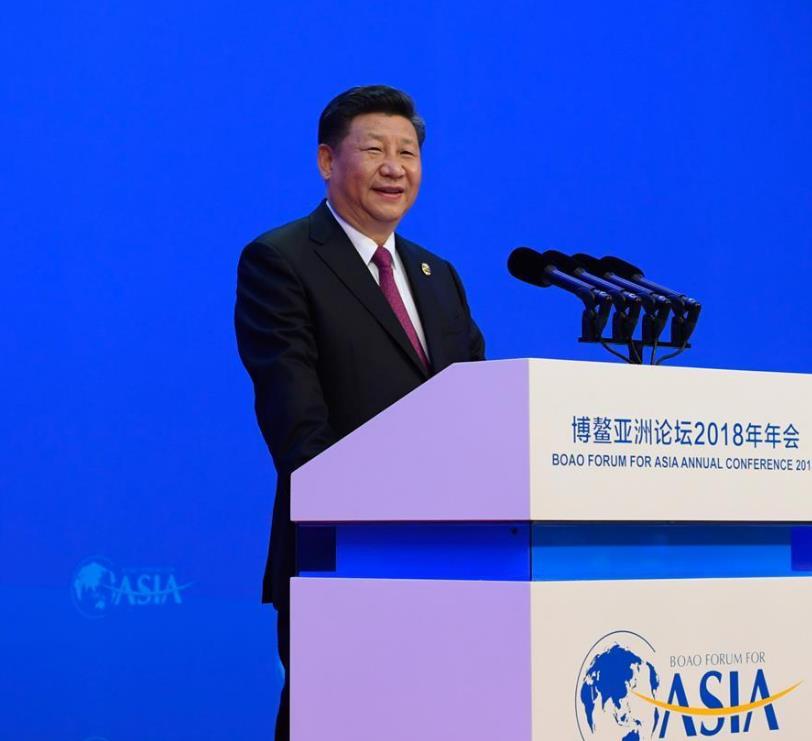 2018年4月10日,博鳌亚洲论坛2018年年会在海南省博鳌开幕。国家主席习近平出席开幕式并发表题为《开放共创繁荣创新引领未来》的主旨演讲。(图片来源:新华网)