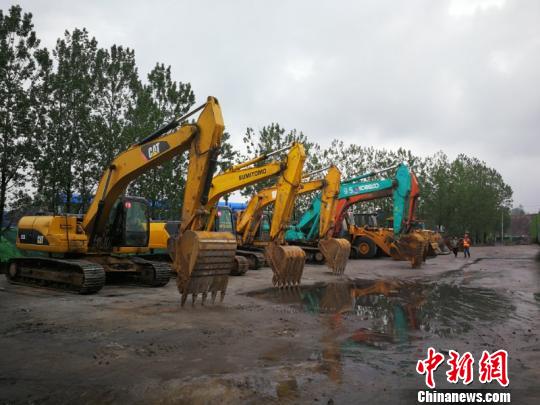 挖掘机、铲车、压路机、运输车辆在现场集结,清运工作随即展开。 王惠琳 摄