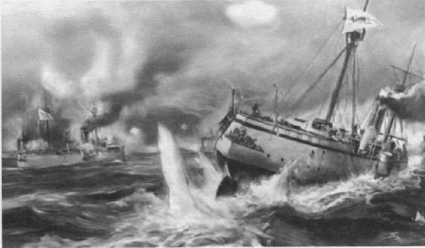 深弹齐射主炮响,火蛇吞吐两舷旁。