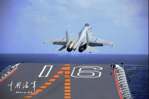 △4月20日,海军辽宁舰编队在西太平洋,开展远海作战对抗训练。图为歼-15舰载战斗机呼啸起飞,直插云霄。