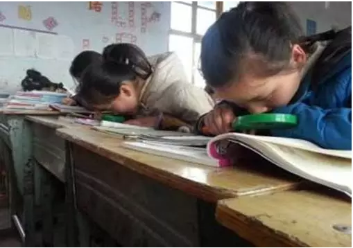 身患眼疾也不放弃四川姐妹梅小歉、梅小英举着放大镜努力的样子让人怜惜疾病限制了你们的视界书籍却为你们打开新的世界。