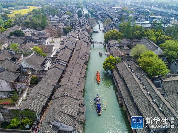 ↑4月1日,空中俯瞰乌镇春色。清明期间,浙江省桐乡市乌镇开启传统的“香市”盛会,为市民和游客呈现踏青游春、蚕花会、民间戏曲、踏白船等众多特色民俗活动,让人们在春暖花开之际,感受江南古镇春季特色民俗之美。新华社记者 徐昱 摄