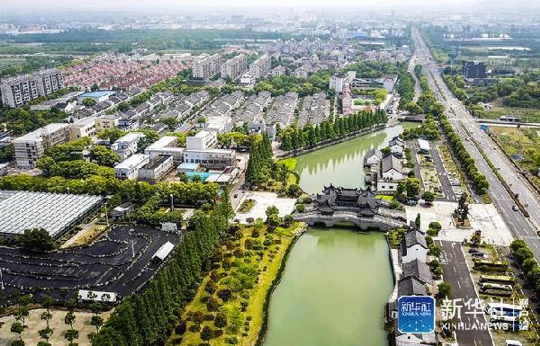 ↑4月21日,空中俯瞰浙江省嘉善县干窑镇的新泾港河道(无人机拍摄)。经过整治的河道水清树绿,已成为美丽的乡村公园。曾经的新泾港,是当地群众口中的“墨汁河”、“黑臭河”,经过三年左右的整治,新泾港水质保持三类水标准,两岸绿树成荫、粉墙黛瓦,呈现出典型美丽江南村落的画面。新华社记者 徐昱 摄