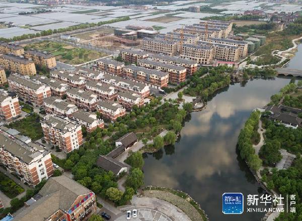 ↑这是浙江省绍兴市上虞区章镇镇新叶村村貌(4月21日无人机航拍)。2014年,章镇镇对新叶村竹洞湖(右下)进行改造,成为集观光游览、自然生态、商业休闲、文化交流于一体的公共空间,为周边村民提供休闲场所。新华社记者 翁忻旸 摄