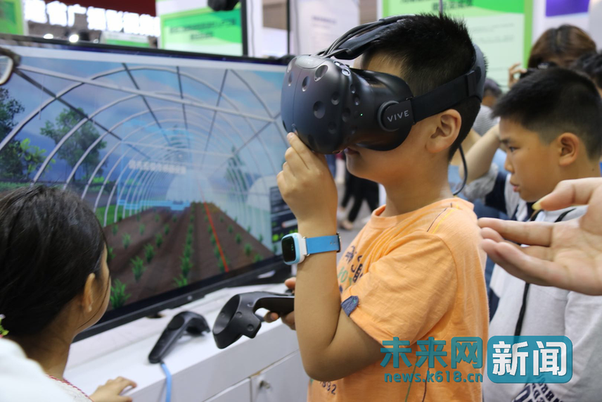首届数字中国建设展览会现场,学生借VR体验田间实验。未来网记者 杨佩颖 摄