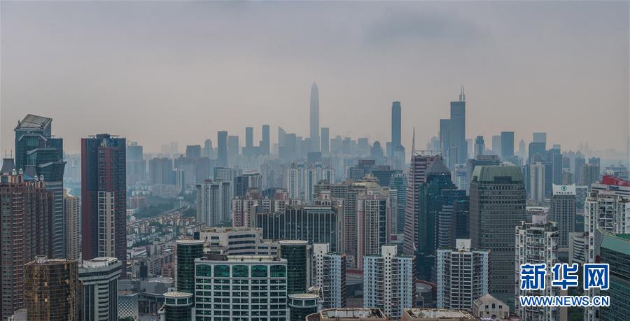 站在深圳国际贸易中心大厦楼顶远眺,十几公里之外的深圳平安金融中心大厦高耸入云(4月26日摄)。