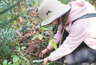 图为科研人员对回归野外的滇桐采取保护措施。杨 静摄