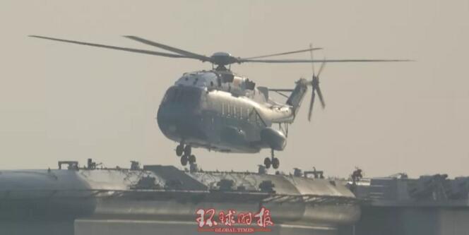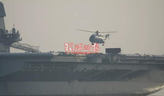 5月5日早上6时,一架直-18改进型直升机降落在国产首艘航母的甲板上,随后直升机起飞离开。