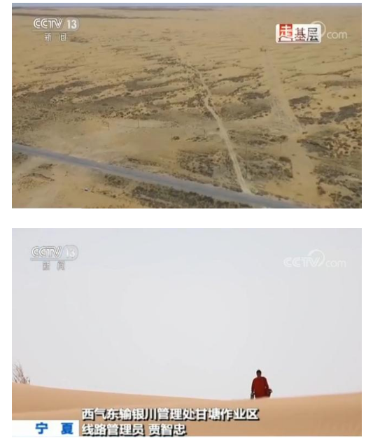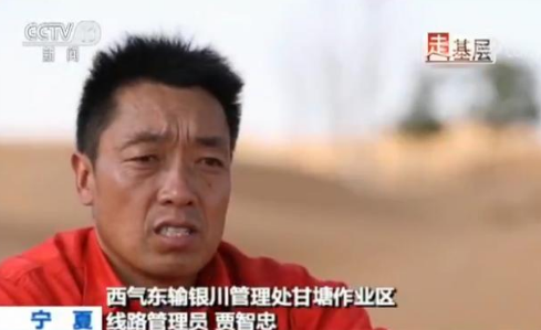 西气东输银川管理处甘塘作业区线路管理员 贾智忠:“在沙漠戈壁里巡线,很荒凉,也很孤独,但是下游几亿用户用上天然气这种清洁能源,减少了环境污染,留住了更多青山绿水,所以我觉得我的青春不荒凉,我跟同事们的坚守,就是为了天然气能在千家万户熊熊燃烧而奋斗。”