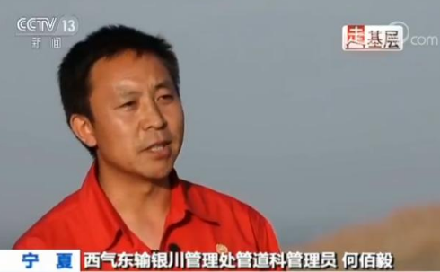 西气东输银川管理处甘塘作业区线路管理员 贾智忠:“我负责的上游天然气进入西气东输管网的第一段,在我辖区内一旦发生管线泄漏,将影响到下游的平稳运行,也关系到下游近五亿人的生产生活。”