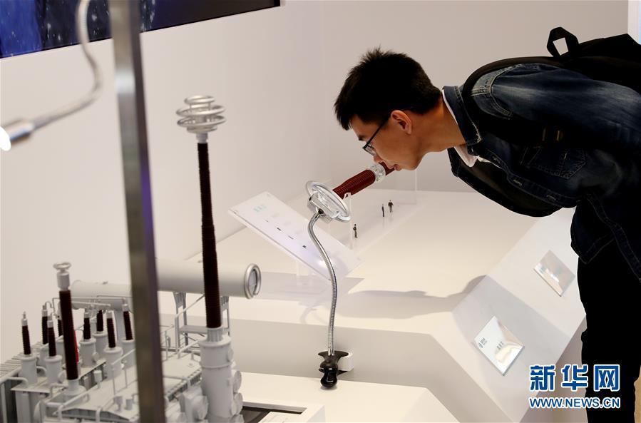 观众在首届品博会国家电网展台前观看“国网芯”智能芯片展品(5月10日摄)。新华社记者方喆摄